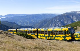 Der Bahnwanderweg von Semmering nach Payerbach ist nicht nur besonders einfach öffentlich zu erreichen. Unterwegs öffnen sich weite Blicke in tief eingeschnittene Täler, etwa bei der Doppelreiterwarte oder am 20-Schilling-Blick.