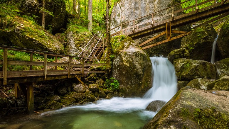Das Rauschen des Wassers hat eine beruhigende Wirkung auf den Menschen. Besonders gut hört man es bei den Myrafällen in Muggendorf bei Pernitz im Piestingtal. Über spektakuläre Kaskaden stürzt das Wasser hier auf einer Gesamthöhe von 125 m in mehreren Stufen in die Tiefe. Die Myrafälle sind auch öffentlich erreichbar, an Sonn- und Feiertagen in den Sommerferien.