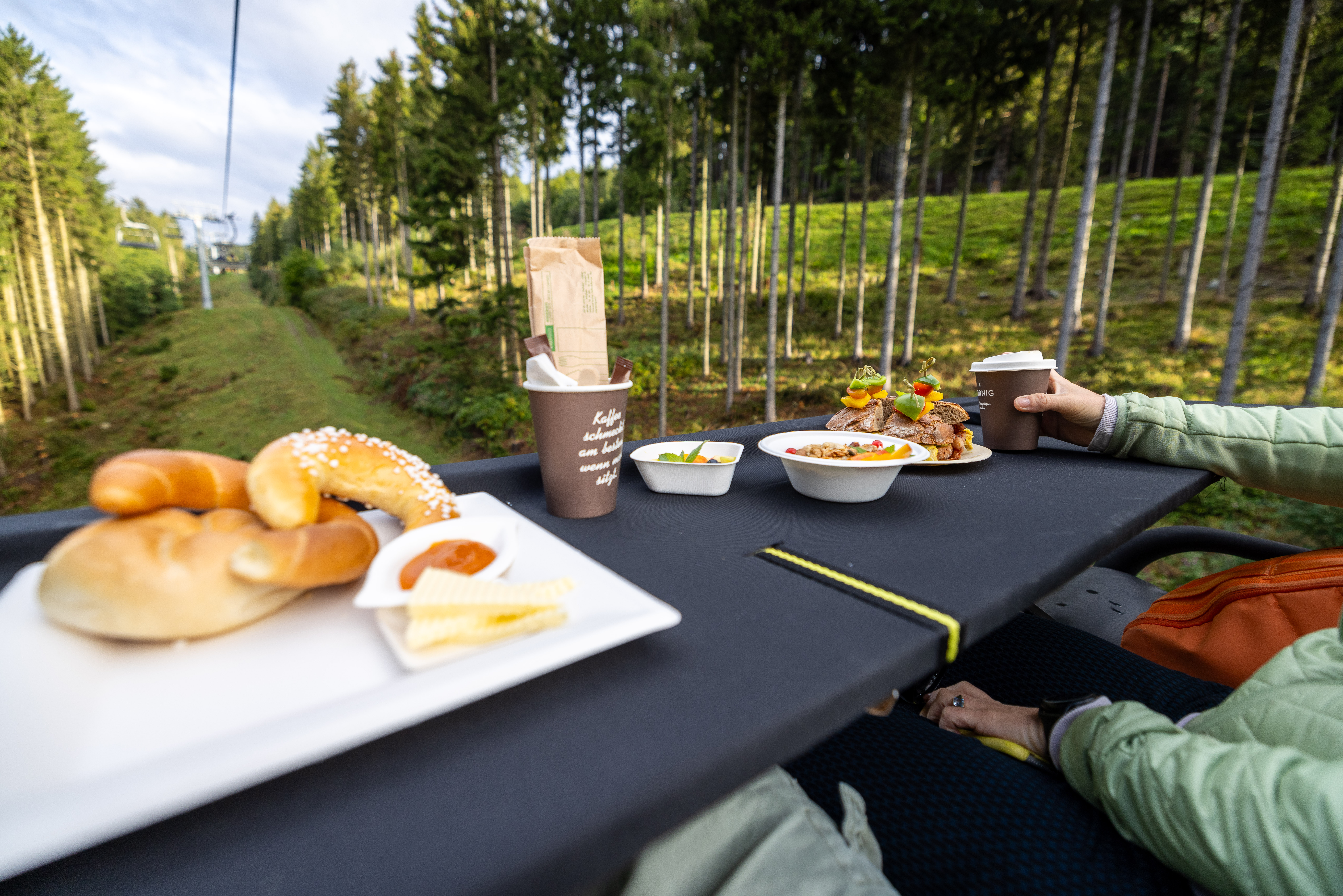 - Mit einem ganz und gar außergewöhnlichen Frühstück wartet die Sesselbahn in Mönichkirchen zu bestimmten Terminen auf. Ab 7.15 Uhr in der Früh wird der am Sessellift befestigte Tisch gedeckt. Während der extra langsamen, rund halbstündigen Bergfahrt stimmt das Frühstück auf den Wandertag ein. www.wieneralpen.at/e-fruehstueck-am-sessellift