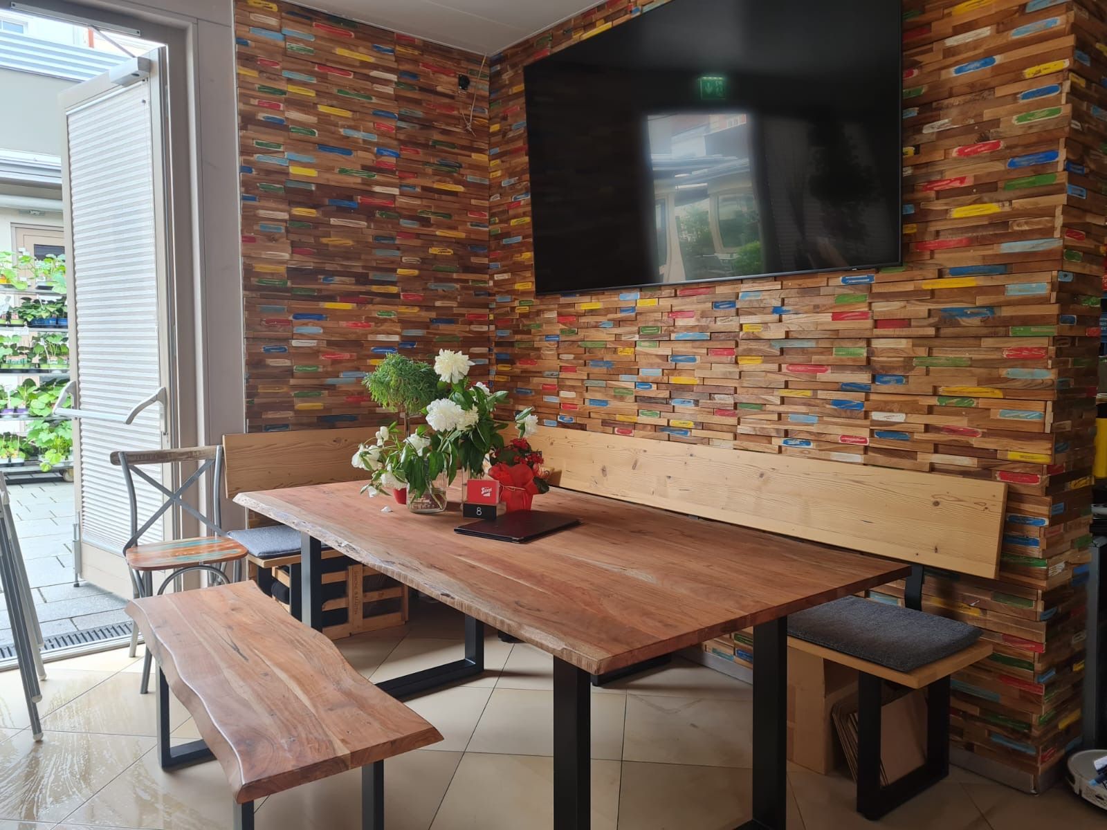 Das Lokal bietet eine kleine, aber feine Speisekarte mit warmen Gerichten, Snacks und Mittagsmenüs und gilt als gemütlicher Treffpunkt, ideal um das Markttreiben zu beobachten und genussvoll zu erleben.