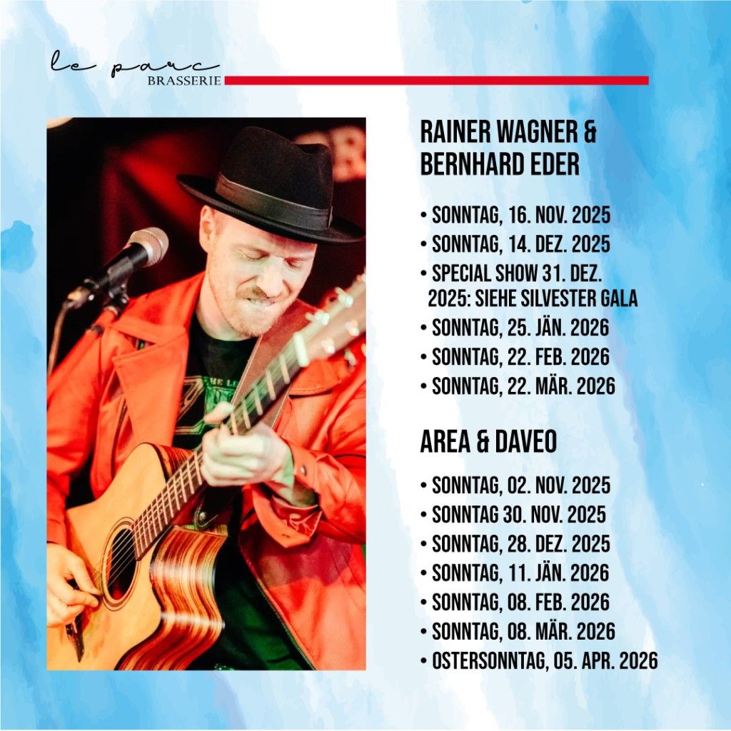 Dazu sorgen wechselnde Live-Acts wie Rainer Wagner & Bernhard Eder oder Area & Daveo für die perfekte Stimmung. Ob gemütlich mit Freunden, romantisch zu zweit oder als Sonntags-Highlight mit der Familie – dieser Brunch ist ein Fest für alle Sinne.