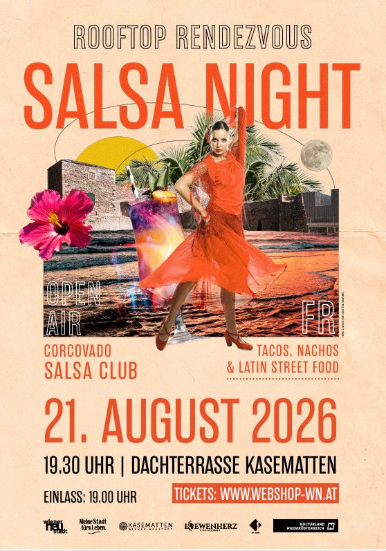 Feurige Rhythmen, pulsierende Beats und echtes Caribbean-Feeling: Die Salsa Night bringt pure Latin-Energie auf die Bühne. Der Corcovado Salsa Club zählt zu den energiegeladensten Latin-Bands Österreichs und begeistert mit mitreißenden Live-Shows voller Salsa, Merengue und Bachata. Die international besetzte Formation mit Musikern aus Kolumbien, Brasilien, Venezuela und Kuba verbindet authentische Latin-Grooves mit einer kraftvollen Bühnenpräsenz und lädt zum Tanzen und Feiern ein.